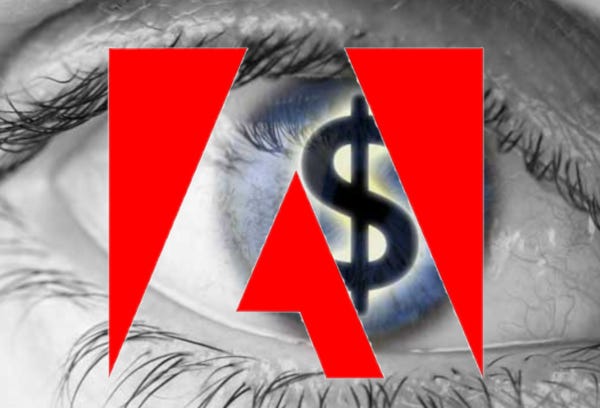 Det er gået viralt på nettet, at Adobe er et slyngelfirma. Det er muligvis ærgerligt for dem, og vi kan 100% regne med, at det har været oppe på direktionsgangen. De sover ikke helt godt om natten. Men vi kan også være 100% sikre på, at den slags firmaer har en indgroet ledelseskultur, der er uforbedrelig. Der bliver ikke talt om, at de muligvis skulle finde en mere etisk og i det lange løb hensigtsmæssigt stil. Nænæ, der bliver talt om, hvorvidt de kan gøre det hele endnu mere smart og fordækt, så folk hopper på den igen.