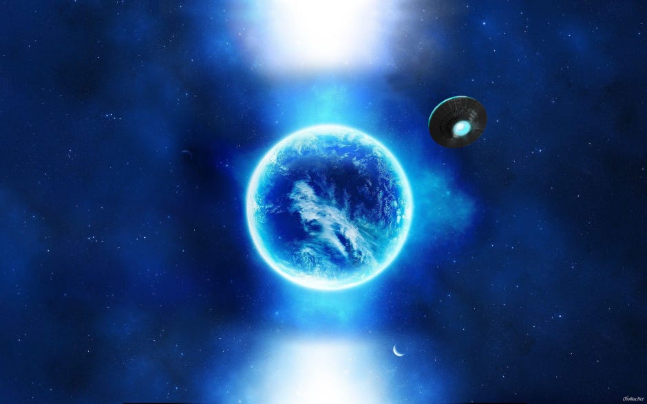 De kalder det for Den Blå Planet. Fra min position 30.000 meter over den faste overflade kan jeg se, hvad der menes dermed. Der er meget vand, og sollys reflekteret i vand er blåt for øjet. Hvis jeg bevæger mig ned til 10.000 meter, bliver udsynet til, hvad de herboende kalder for himlen, også blåt.