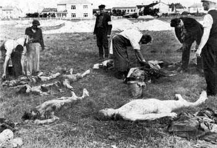 Lad os afrunde den afskyelige beretning om Sovjetstaten. Under Stalin i Anden Verdenskrig blev den frygtede Lavretij Beria Stalins mest berygtede slagter. Da man var i krig med tyskerne, blev alle hans forbrydelser smurt af på nazisterne. Beria fængslede 20 millioner og sendte dem til slavelejre. Forskellen mellem de sovjettiske fangelejre og de tyske var ganske enorm, næsten usammenlignelig. Vi taler om hele perioden før de de britiske og amerikanske civilbombardementer, hvor al infrastruktur i krigens sidste år blev ødelagt og enorme epidemier af tyfus og kolera brød ud i lejrene. Der er herfra de allierede og zionisterne senere kunne skabe deres Holocaust-mytologi om gaskamrene og udryddelseslejrene.
