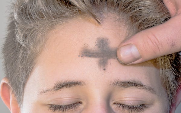 Endnu et mitræisk ritual, der er sevet ind i kristendom, finder vi i aske-onsdag. Her tegnes der et diagonalt kors med aske på panden. Det er den 3. grad af indvielse i mitræismen, soldatens indvielsesgrad. I den oprindelige indvielse bliver initiaten tilbudt en krone på spidsen af et sværd. Han tager kronen og sætter den på sit hoved for straks at tage den af og smide den på jorden, mens han udråber: Min Herre er min krone, Mithra er min Herre. Ceremonimesteren giver derefter initiaten en lussing og tegner askekorset i hans pande. Asken repræsenter det store bål, hvor Verden brænder ved tidens ende, hvor frelseren Messias = Mithra giver mennesker den frie vilje og valget mellem godt og ondt og dermed muligheden for at blive det fuldbyrdede menneske. Den med lussingen var bevaret langt op i den europæiske middelalder og blev brugt, når man blev slået til ridder. Hvis du har set Ridley Scotts film Kingdom of Heaven, vil du have set en scene med lussingen i starten af filmen, hvor hovedpersonen bliver slået til ridder (Be a Knight!) af sin døende far.