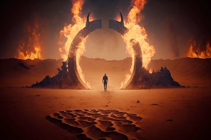 Der findes et iransk udtryk kaldet freskhar betyder at opfriske. Husk at iransk er indoeuropæisk sprog eller arisk (aryan, ayran, iran) sprog – uuuha det må man ikke sige, for så er man nazist! Det er det, der vil ske ved Apokalypsen. I parsisme er ilden den rensende livgivende kraft, og vi ser ilden i deres ritualer. Den findes også det indiske renselsesritual homa. Indere og iranere kom begge fra den samme ældre kultur. Ved tidens ende vil verden blive renset af en ild, og ud af det vil gudsriget opstå, den gyldne tid, tusindårsriget. Dette er persisk eskatologi stammende fra som minimum år 600 f.Kr. Jesus siger: Jeg er kommet for at bringe ilden til verden. Så man mente for 2.000 år siden, at tidens ende var ankommet.