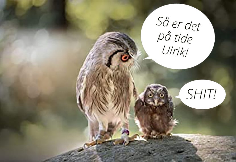 Min nabo har hængt en kasse op på sin ladegavl, hvor der er plads til en natugle-familie. Uglemor sørger for sit afkom og fodrer dem med mus, til de næsten kan flyve. Så bliver de smidt ud af reden, for der er heller ikke plads længere. Her vil empatiker-ideologen straks fare i flint og skælde uglemor ud for sin brutalitet. BEEP, uglemor er en kærlig mor, men hun ved, at det er på tide, og hvis hun IKKE smider kræet ud, så vil det dø af både sult og pladsmangel, for det er ikke længere bæredygtigt og fremtidssikret – bemærk de helt rigtige buzzwords her – bare at fodre løs på en forslugen pivskid. Så flapser det dunede kræ ned på jorden, hvorefter det kravler op i et træ. Så kan ræven og katten heller ikke komme efter den. En ugle kan faktisk gå op af en træstamme med sine kløer. Så sidder den lidt dér et par dage og tuder-piver. Den beslutter sig dog til at flyve lidt frem og tilbage, og dens mor stikker den stadigvæk en mus, men nu er det meningen, at den selv skal fange dem. Det lærer den så, og kunne den have lært det i hullet i uglekassen? Nej vel. Hvis den ikke lærer det, omkommer den. Det er naturens tough love. Naturen og uglemor elsker sit afkom, men hun kvæler det ikke i omsorgsimperialisme. Hun giver afkommet, hvad det behøver og ikke, hvad det begærer.
