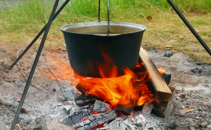 Enhvert spejdertræf er udstyret med jerngryder til at hænge i kæder ned fra en trefod.