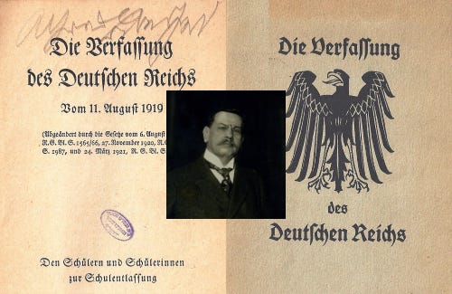 Weimarrepublikken 1919 – Weimarforfatningen er skabt under hovedindlydelse af den jødiske jurist, Hugo Preuss. En del af forfatningen viser, hvad dens formål var: dekonstruktion af tysk kultur. Der blev foretaget en ny regional opdeling af Tyskland, der gik på tværs af de gamle Länder eller fyrstedømmer, hvilket blev til de ny delstater.