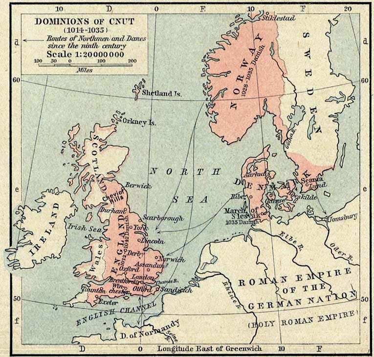 Vikingetiden 800-1050. Der var forbindelse mellem nordboerne og indbyggerne i England længe forinden via bosættelser (Danelagen). Herefter plyndringen af Paris i 845, bosættelserne i England i slutningen af 800-årene og i Normandiet kort efter 900, samt erobringen af hele England i 1013 og igen i 1016. Vi strør om os med navne: Svend Tveskæg, Knud den Store, Ivar den Benløse, Knud den Hellige.