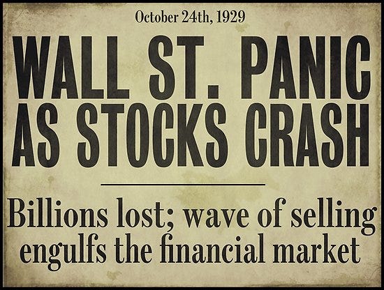 Wall Street-krakket 1929 – Børskrakket iscenesat af the Federal Reserve for at skabe en kunstig depression. Scriptet blev gentaget i 2008 som Finanskrisen.