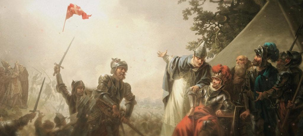 I øvrigt blev det brugt 50 år før slaget i Estland af Valdemar den Store jf. middelalderforsker Kurt Villads: