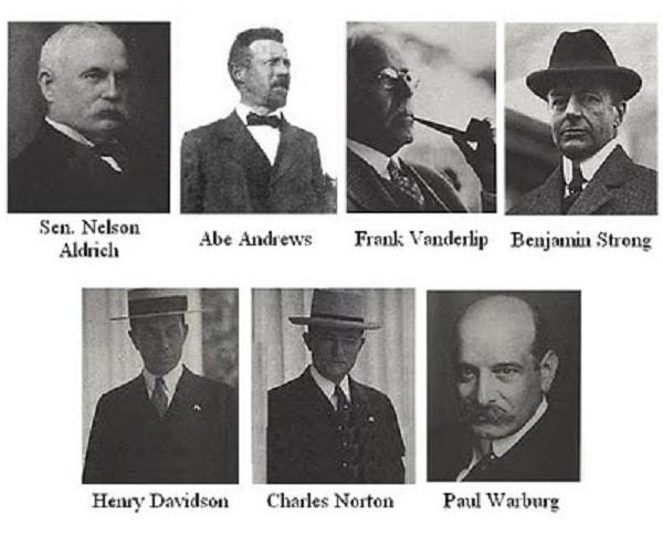 Federal Reserve, kuppet på Jekyll Island 1913 – det nationaløkonomiske statskup af en gruppe bank-moguler, der varer ved til i dag (spørg hvem den siddende præsidents OG amerikanernes værste fjender er).