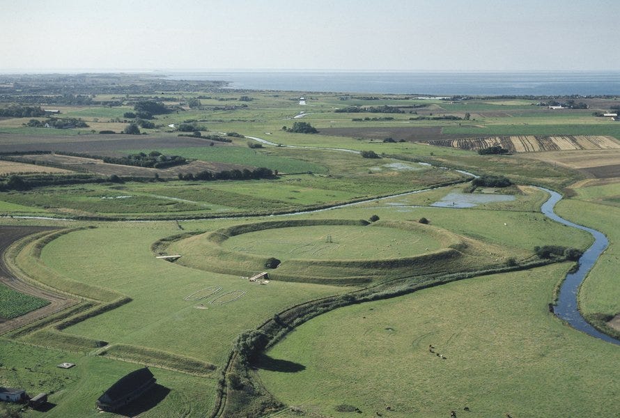 Dannevirke – en jord- og stenvold og uden tvivl beplantet af træpalisader, bygget på det smalleste sted på den jyske halvø (i dag i Nordschlesvig) af de germanske stammer i Danmark som værn mod stammer sydfra. Forstærket i flere omgange, i 800-tallet af den danske kong Godfred som værn mod mod Frankerne, der var Romerrigets arvtagere, og som var under opmarch. Her starter Vikingetiden. Brugt så sent som i de dansk-tyske krige i 1848 og 1864. Stednavn: Hedeby. Hvis ikke den danske konge havde dummet sig i 1864 ved at fornærme Bismarck, havde det stadig været dansk.