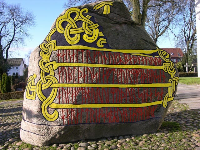 C’mon, du kan godt læse det. Det hører med til at være en dannet dansker at udsætte sig for det sprog, som dine forfædre talte. Mjææ men jeg er 2. generationsindvandrer – fint, så bare husk at kimbrerne kom fra Syrien, så går det alt sammen. Du får et enkelt ord: kumbler betyder runer eller ord. Rul på r’erne og og bið dig selv i tungen og lyd som en islænding, for islandsk i dag kommer tættest på, hvordan de talte både oldnordisk og oldengelsk.