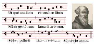 Kilden findes i Guido af Arezzos hymne Ut queant laxis tilskrevet Sankt Johannes, hvilket vil sige Johannes Døberen (ikke Johannes af Padmos, evangelisten). Den stammer fra samlingen af såkaldte gregorianske hymner, der indgik i liturgien kaldet Liber Usualis.
