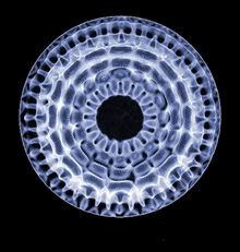 Ved hjælp af en stemmegaffel i den pågældende frekvens dannes et unikt mønster med et sæt antinoder i kanten. 528 lyder sådan: