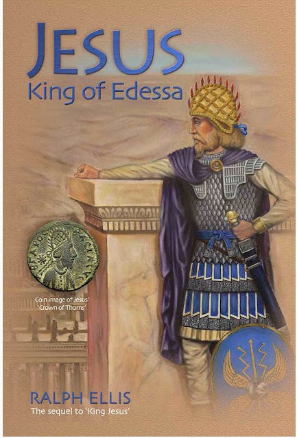 Sammenlign Omphalus-stenen, eller som den hed i Edessa: Elagabal-stenen med den traditionelle krone for kongerne i Edessa. Og på forsiden af Ralph Ellis’ bog er der også billedet af en mønt fra samtiden, der forestiller Kong Isas Manu af Edessa. Der findes altså et samtidigt portræt af den historiske Jesus på en mønt!