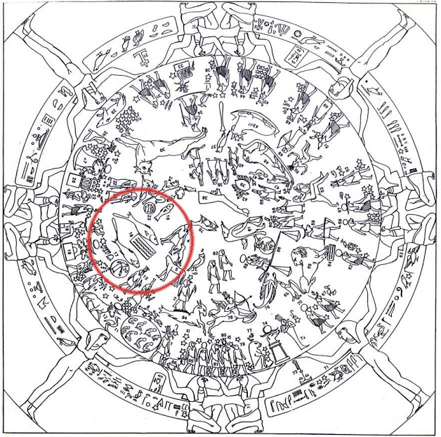 En drage er altså ikke en drage på aramæisk, det er en fisk. Fiskens astrologiske tegn er en fisk med to stråler/halefinner. Kong Arthur/Jesus er født i forbindelse med introduktionen af fiskens tegn. Det fortæller helt præcist fødeåret: år 10. Her sker skiftet mellem Aries og Pisces. Jesus blev født som Guds Lam og blev en Menneskefisker, eng. Fisherking. Legenderne siger, at Kong Arthur blev født i tegnet Draco, altså fisken på aramæisk. På den berømte zodiak fra Dendeera i Egypten, er der i fiskens tegn to cirkler, en for Solen og en for Venus (Jesus og Maria Magdalene – Arthur og Guineverre). Navnet på hans far, Uther Pendragon skal læses ben Draco, for det er et aramæisk navn lige som alle de andre navne i legenden. Altså søn (ben) af en fiskerkonge. Det er en fisk med ben i (sorry).
