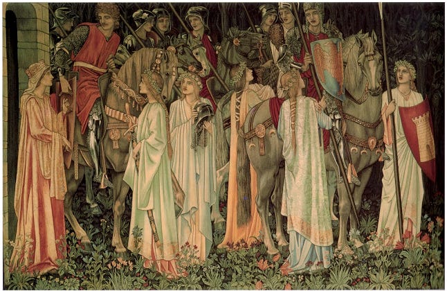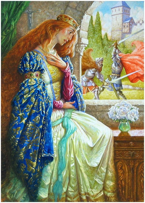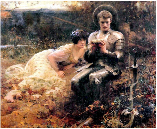 Og Gweneverre på walisisk. Hvordan det? Der er en walisisk forbindelse her, for fredag på walisisk hedder gwen. På alle sprog fra Mellemøsten og Europa er fredag Venus’ dag, den jødiske sabbat-aften. Veneres (italiensk), Vendredi (fransk), Freitag/fredag (germansk) er Freyas dag, og Freya er Venus. Jomfru Maria var kendt som Stella Maris, Havets Stjerne, der på græsk er Afrodite, altså Venus igen. Dronningerne er alle Venus-inkarnationer. Tristan og Isolde, Pelleas og Mélisande, flere variationer af de arthuriske legender, flere kopier af de legendariske søskende. Og forresten, Pelleas og Mélisande, den franske version af historien, er sat i musik i en symbolistisk Opera af Claude Debussy, der står på listen over stormestre i logen Priory de Zion. En tid med symbolisme, middelalder-revival = nygotik, en tid, hvor Wagner skriver en cyklus om Ringen og operaer som netop Parzifal og Tristan og Isolde. En Belle Epoque, hvor Verden endnu ikke var helt smadret af industrialisme og verdenskrige. En romantisk periode ihukommende, at romantik er et middelalder-koncept. De første romaner er skrevet i middelalderen.