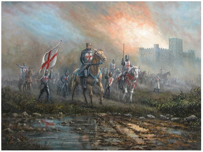 Historikerne – ganske få – i middelalderen kendte historien. En af dem var Geoffrey af Monmouth. Det gjorde han, fordi en navnkundig gruppe af krigermunke havde opsøgt denne viden i forbindelse med korstogene og havde overgivet deres viden til ganske få udvalgte, hvoriblandt han var. De navnkundige, berømte, berygtede – alt efter behag og behov – tempelridderere havde som særligt formål med deres deltagelse i de ligeså navnkundige togter at finde beviser for den tabte historie og bringe den tilbage til, hvor de kom fra. Hvorefter de så ikke kunne tale højt om deres nyerhvervede viden. Hvad handlede korstoget mod Katharerne i Sydfrankrig om, hvor tempelridderne bevidst fravalgte at deltage? Det handlede om, at der eksisterede en gruppe, der kendte historien og videreførte den nazaræiske, essenske og gallilæiske retning af jødedommen, som Pauluskirken aka Romerriget aka Pavestaten, Rigets arvtager, havde undertrykt og ikke ønskede skulle genopstå.