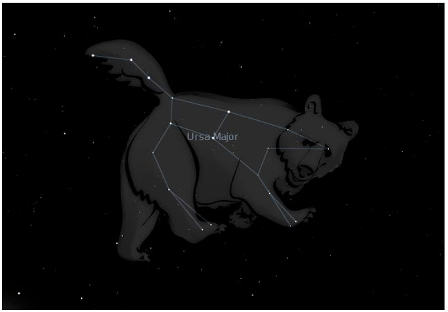 Den rare bamse har en Karlsvogn i halen. Som du sikkert ved, peger den mod Polaris, Nordstjernen, der er centrum for den Store Zodiak, der roterer baglæns (precesserer) på Himlen. Hamlets Møllehjul. Shivas Hjul.
