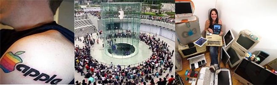 Deres aftagere opførte sig tilsvarende kultisk. Til et præsteskab hørte en menighed. At eje en hundedyr, lækker iPhone var adgangskort til Nirvana. Ikke at eje den betød teenagere, der brød grædende sammen og bed i gulvtæppet, indtil deres forældre invilligede i at bruge hele deres månedslige overskud på at formilde den grædende klump på tæppet. En kult kræver sine ofre.
