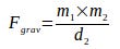 Så ud med Newtons tyngde = masse x masse / afstand:
