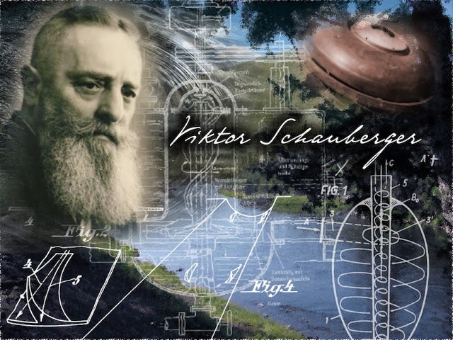 En af de videnskabsmænd, der leverede teknik til tyskerne var østrigeren Victor Schauberger. Som forstmand studerede han vand hele sit liv. Som Wallace Thornhill siger: De ægte natur-filosoffer er matematikerne overlegne, for de har ikke abstraheret sig fra virkeligheden. Videnskaben tabte kæden og løb af sporet for 100 år siden (Einstein) og har ikke siden fået samlet den op igen. Men Schauberger tog hele tiden udgangspunkt i naturen, for han befandt sig hele tiden i den.