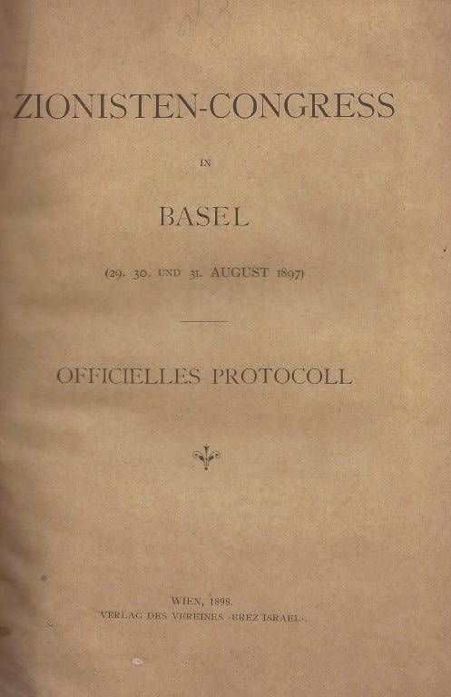 Den første Rothschild-Zionist-kongres blev afholdt i Basel, Schweitz i 1897. Interessant i øvrigt, at BIS og Davos har til huse her i dag.