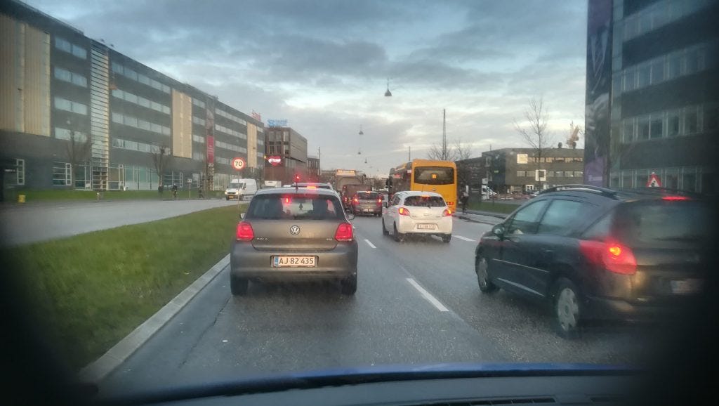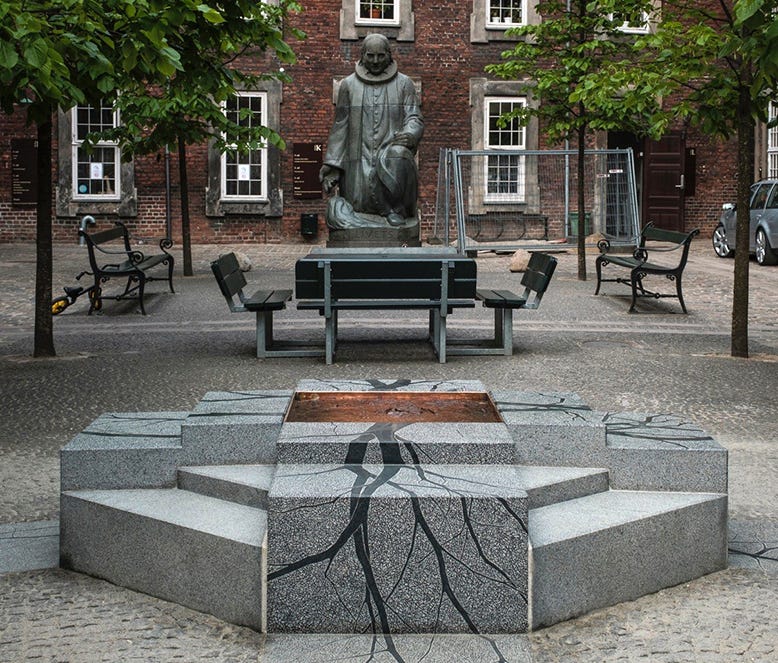 I beundringen af skønhed, glemmer vi, hvad vi i øvrigt skal bruge det til. Det er nok i sig selv. Sæt dig på en bænk på en afskærmet plads med gamle patinerede bygninger og et beroligende springvand og fald i staver. Du kan sidde der i timevis uden andet formål end at sidde der. Oplev, hvordan alle mennesker, der går forbi, er midlertidigt påvirkede af stedets stemning. Altså lige undtagen de, der ikke kan slippe deres mobilbamse for blot en stund, men de er ikke til stede nogen steder alligevel. Prøv dernæst at gøre det samme på en parkeringsplads ved et indkøbscenter. Du bliver ret hurtigt rastløs og tænker: Er hun ikke snart færdig med at shoppe, så jeg kan komme væk herfra? Er det en urimelig sammenligning? Nogle bymiljøer er næsten 100% som parkeringspladsen. Parkeringspladsen har indrømmet aldrig været stedet for kontemplation, resten af bymidten! Så meget funktionalitet synes unødvendigt.