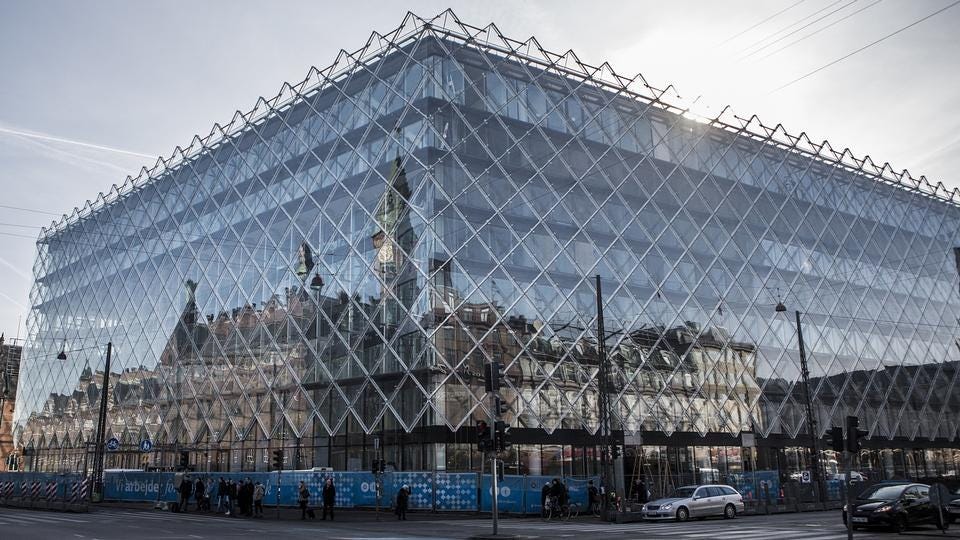 Kirker var de højeste bygninger i alle byer, indtil industrialismen og modernismen tog over. Eiffeltårnet blev et af de første symboler for den nye Gud Mammon, og stålet var hans tjener. Tårnet skulle være højere end Notre Dame. I det danske landskab blev det DLG, Dansk Landbrugs Grovvareselskabs shit-ugly kornsiloer, der var det højeste – efter kommunikationsmasterne. I storbyerne blev det magtens paladser eller hoteller, hvor det før var domkirken eller rådhuset. Industriens Hus ved rådhuspladsen fik ikke lov til at skyde i vejret, men det ligger som en magtfuld glas- og stålkæmpe og demonstrerer, hvem det regerer byen og landet – og det er ikke de folkevalgte inde på rådhuset. Dansk Industris palads skal ikke være smukt, det skal være imponerende og frygtindgydende. Det er – for at sige det uden fløjl – et stykke fascistisk arkitektur, der skal demonstrere, at privat virksomhed nu har opslugt stat og kommune. Der er sket en tvangs-sammensmeltning af det private og det offentlige, hvilket er en af grund-definitionerne af fascisme.