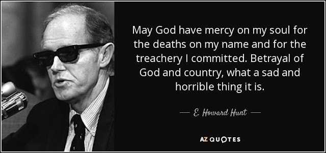 Disse cubanere, som Nixon nævner, er ikke nærmere defineret. Men han har som den intelligente mand, han var - og tag ikke fejl af det, han var en af de mest veluddannede amerikanske præsidenter nogensinde - været fuldstændig klar over, at CIA benyttede sig af cubanske hitmen. Vi er fra journalisten og forfatteren, Ole Dammegård, gjort bekendt med Operation 40, en gruppe af mestendels exil-cubanske hitmen, der går igen i en hel stribe højprofilerede politiske mord fra Kennedy, Luther King, Malcolm X, Salvador Allende og Olof Palme + kulturpersonligheder med politisk farlighed, John Lennon og Bob Marley. Den selv samme gruppe. Hvis senere CIA-direktør flittigt benyttede sig af dette apparat, har det været etableret allerede under Hunt.