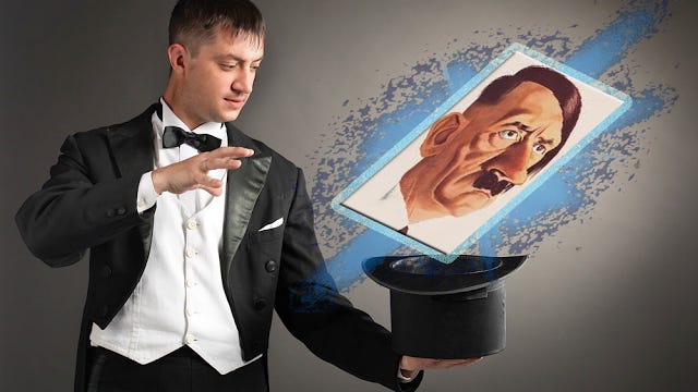 Hvis man ikke har rent mel i mølposen, og i et snævert øjeblik ønsker at benytte sig af psykopatens non-empatiske, de-humaniserede attitude til andre inhumane størrelser, så trækker man Hitler-kortet.