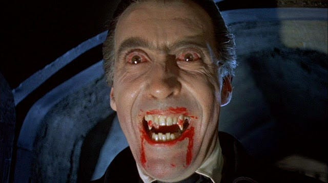 Sir Christopher Lee har hygget sig i sin re-make af Dracula fra 1958.