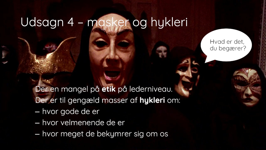 Psykopat-teknokratiet er meget dygtige til at korrumpere. Det er den måde, de kontrollerer både deres medarbejdere, deres indforskrevne ofre og dermed resten af befolkningen på. Metoden er den venetianske jf. de venetianske masker på billedet, der stammer fra Stanley Kubricks Eyes Wide Shut. De var mestre i det. De opfandt det moderne finansbankvæsen og diplomatiet. Diplomati er manipulerende efterretnings/spion-væsen. Når de ønskede kontrol over den tids rigmænd, fyrster, konger, storkøbmænd, m.m., så ankom de med spørgsmålet: Hvad er det du begærer? Nåe, er du til pomp og pragt, guld og juveler, berømmelse, skønne damer … eller måske små børn? Jamen det kan vi godt sørge for, at du får.