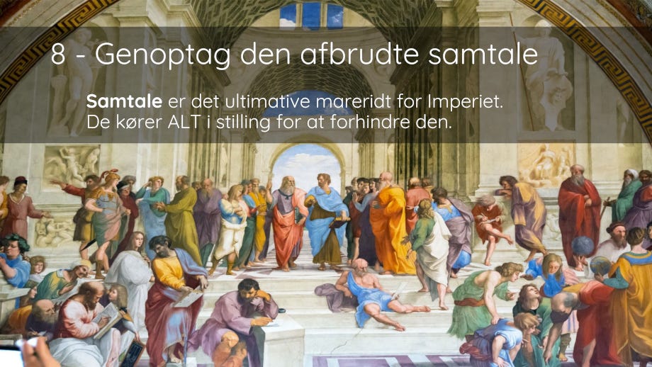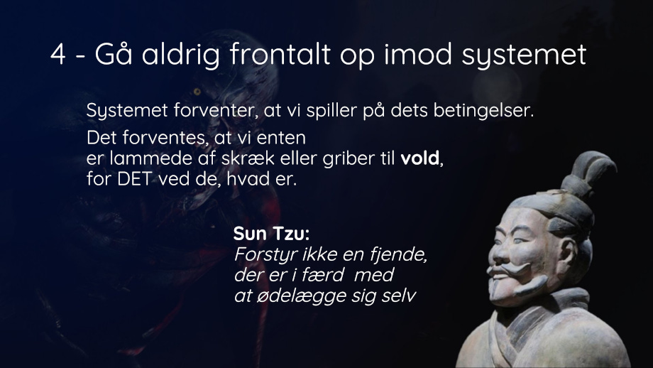 Lad være med at spille, tale og reagere på krigsherrernes betingelser.