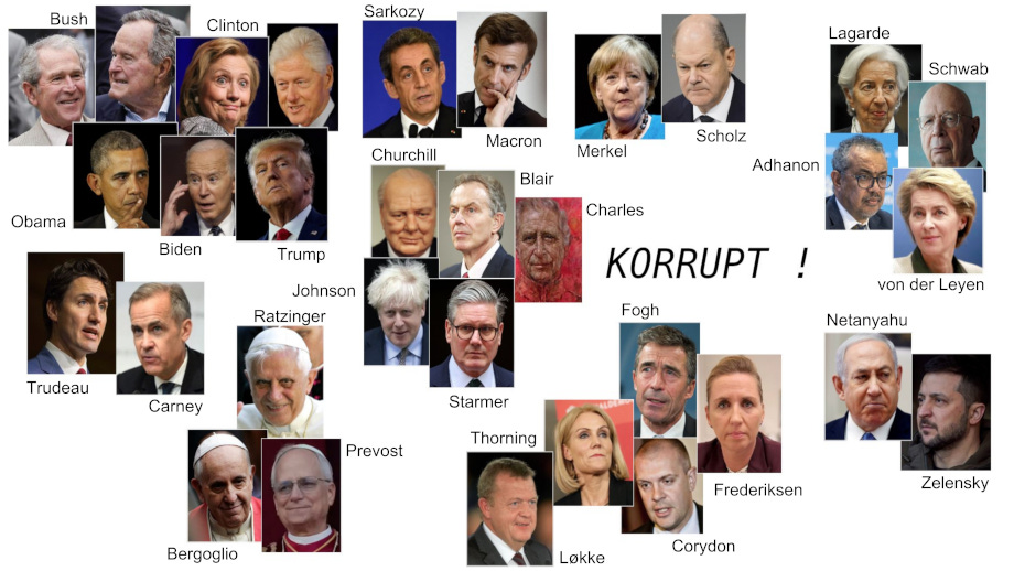 Dette udvalg af 32 kendte lederhoveder – måske du ikke kender dem alle sammen – er alle sammen stang-korrupte. De samme gælder også de regeringer/administrationer og institutioner, de repræsenterer.